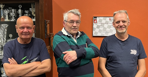 In de finalegroep A bleek Geert van Aalten (links op de foto) na een spannende laatste ronde de sterkste. Ruud de Kooter (rechts op de foto) werd kampioen in finalegroep B, terwijl Peter Litjens (midden op de foto) de meeste punten vergaarde in de laddercompetitie.