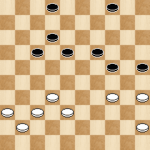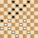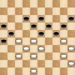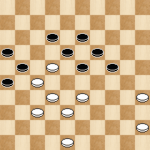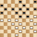 In deze stand had Alex kunnen winnen door een voordelige ruil te maken. Tempo’s pakken in een eindspel is vaak heel sterk! Nu gaf Alex met (9-13) Bram de gelegenheid om naar voren te ruilen waardoor het remise werd. Winst was: (22-27!) 32×21 (17×26). Hierna kan ik geen serieuze verdediging eer vinden voor wit. Bijvoorbeeld: 41-37 (12-18) 37-32 (18-23) 32-27 (23-28)34-29(25-30) Wit moet offeren en er volgt een makkelijke winst.