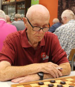 Jo ten Westeneind speelde remise tegen Arnold Beset. Peter Litjens en Jozef Donkers hielden elkaar in een aantrekkelijke partij in evenwicht. Jelte Evers kwam een schijf achter tegen Piet van Erp door. Piet van Erp van DOG Uden stond huizenhoog gewonnen maar vergat op zet 55 37-31 te spelen en moest genoegen nemen met remise.